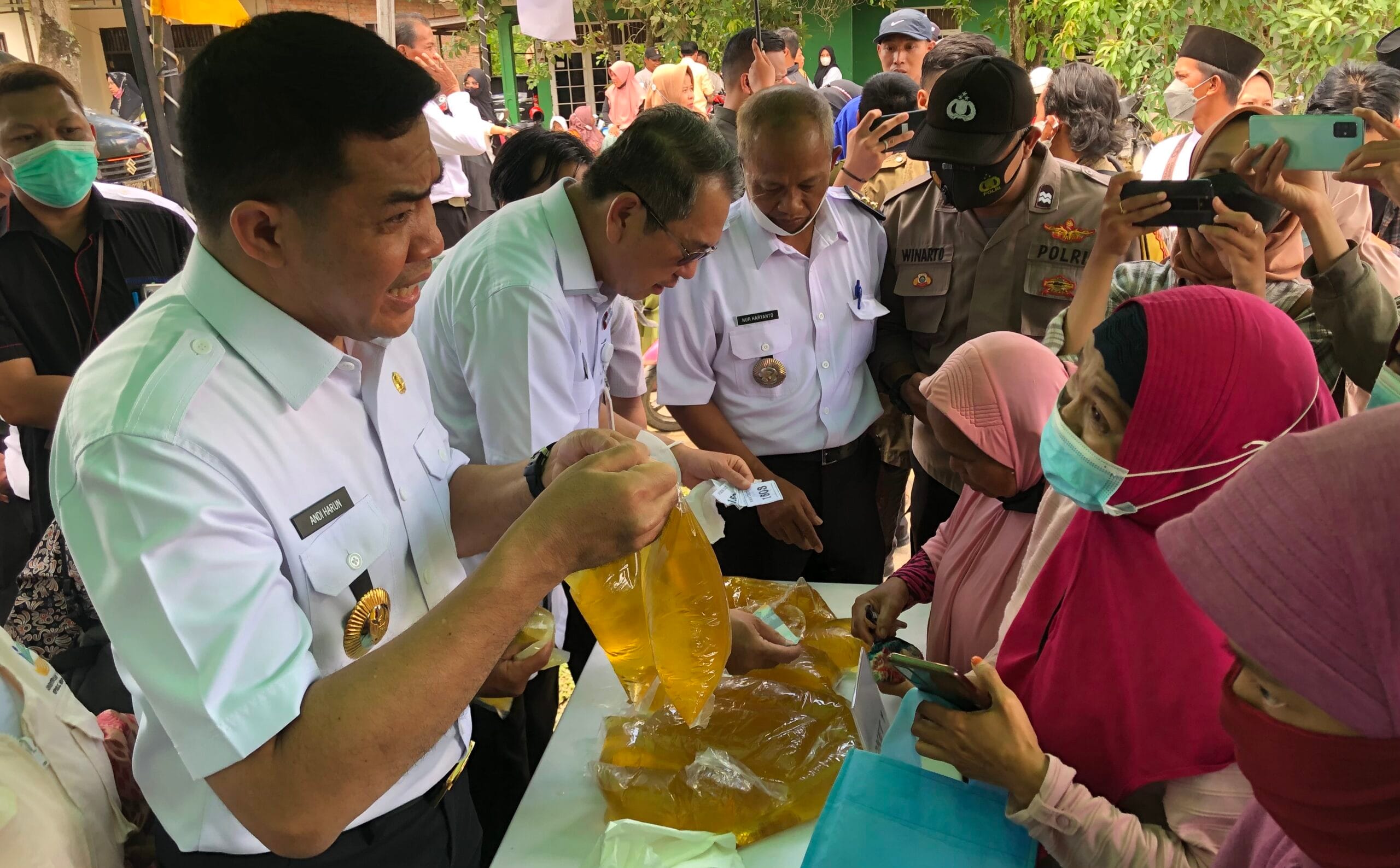 Andi Harun secara langsung terlibat saat pendistribusian minyak goreng curah kepada masyarakat. Satu per satu pembeli dilayani oleh orang nomor satu di Pemkot Samarinda itu.