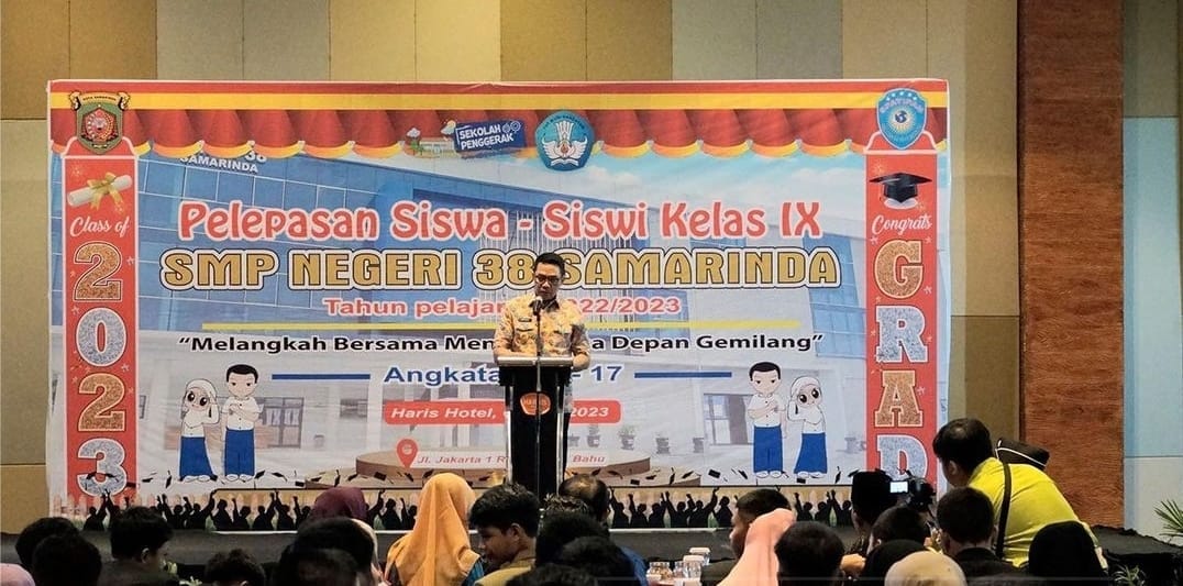 apakabar.co — SAMARINDA – Walikota Samarinda, Andi Harun menghadiri pelepasan siswa-siswi kelas IX SMP Negeri 38 Samarinda. Yang diadakan di Ballroom Hotel Harris Samarinda. Kamis (4/5/2023).