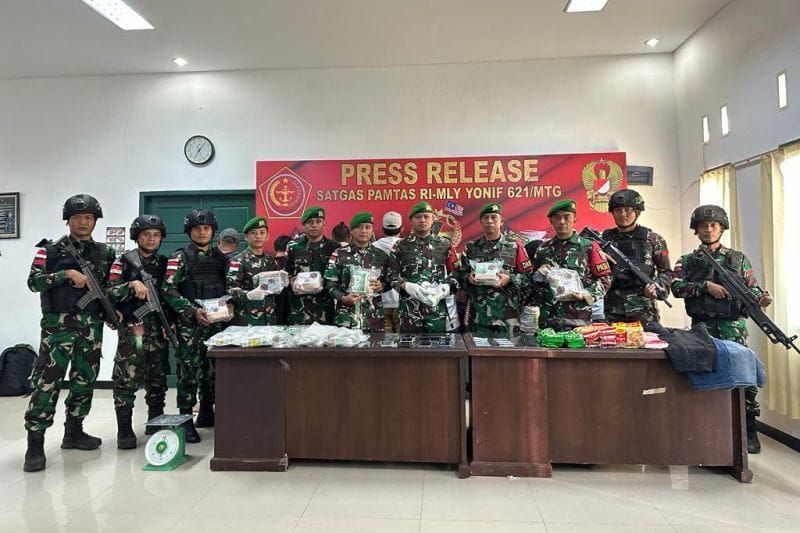 apakabar.co — NUNUKAN – Personel TNI dari satuan tugas (Satgas) pengamanan perbatasan Yonif 621/Manuntung, Kodim 0911/Nunukan, Kalimantan Utara berhasil menggagalkan 20,8 kg sabu asal Malaysia, Senin (6/3/2023) kemarin. Para personel tersebut mendapati barang bukti dari atas kapal jenis loangboat.