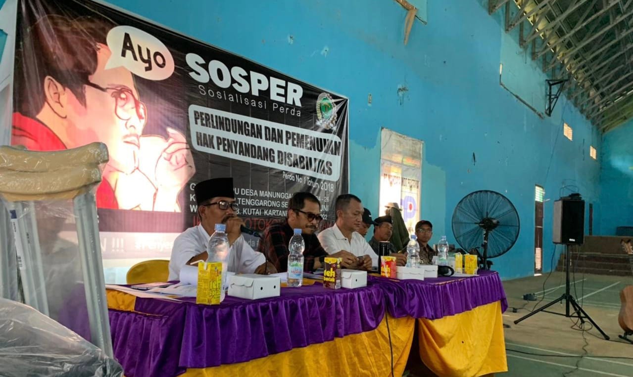 apakabar.co-Anggota DPRD Kaltim Marthinus kembali sosialisasikan Perda 1/2018 tentang perlindungan dan pemenuhan hak disabilitas. Dihadapan warga Desa Manunggal Jaya Kutai Kartanegara ia menyampaikan Perda ini tidak hanya untuk mengetahui hak penyandang disabilitas, namun juga kewajiban setiap warga negara.