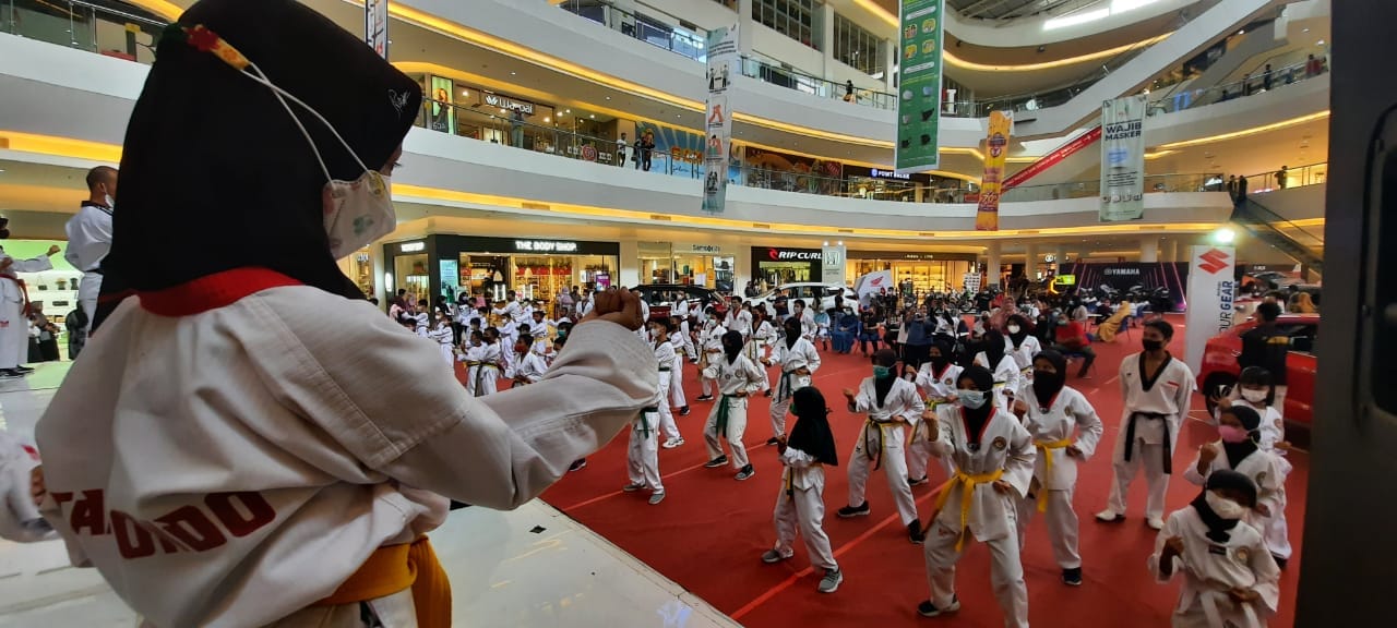 SAMARINDA.apakabar.co– Pengurus Kota (Pengkot) Taekwondo Indonesia (TI) Samarinda menggelar latihan bersama yang diikuti oleh beberapa anak ranting di Atrium Big Mall Samarinda, Rabu (17/11/2021).